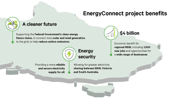The Rewiring the Nation program is investing in new transmission lines to deliver affordable, reliable renewable energy to cities, towns and regional communities. This will also help achieve Australia's emissions reduction targets of 43% by 2030 and net zero emissions by 2050.